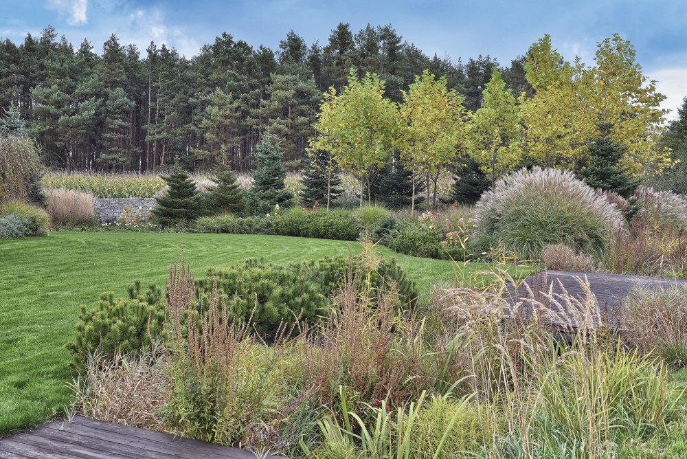 Ten ogród z brzozowym zagajnikiem powstał jak za dotknięciem czarodziejskiej różdżki. Na dziewiczej podmokłej łące wyrosło 350 drzew, które pięknie wtopiły się w leśne tło.