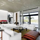 • W całym domy jest dużo przeszkleń - wielkie szklane tafleł ączą wnętrze z otaczającym krajobrazem.