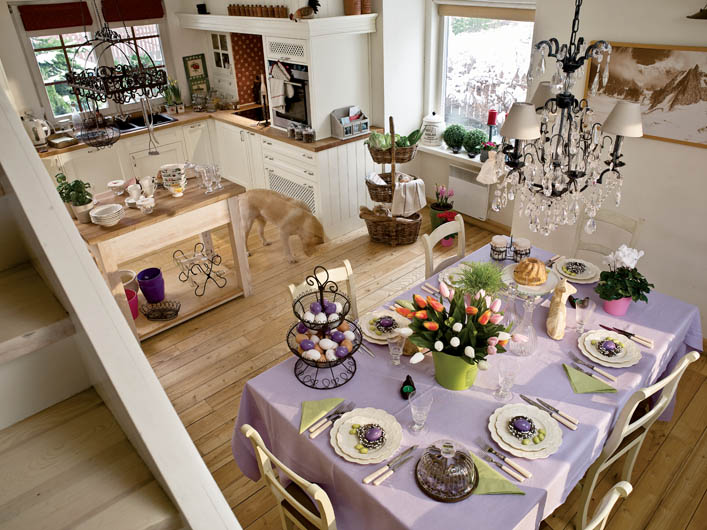 • Wielkanocny stół z dekoracjami we francuskim stylu.