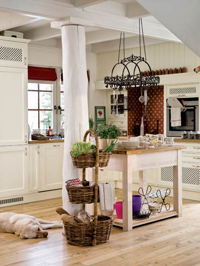 • Atmosfera jak w Prowansji: drewno, jasne szafki kuchenne, naturalne światło.