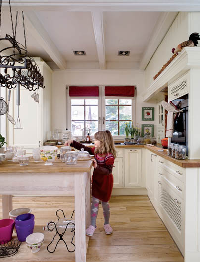 • Atmosfera jak w Prowansji: drewno, jasne szafki kuchenne, naturalne światło.