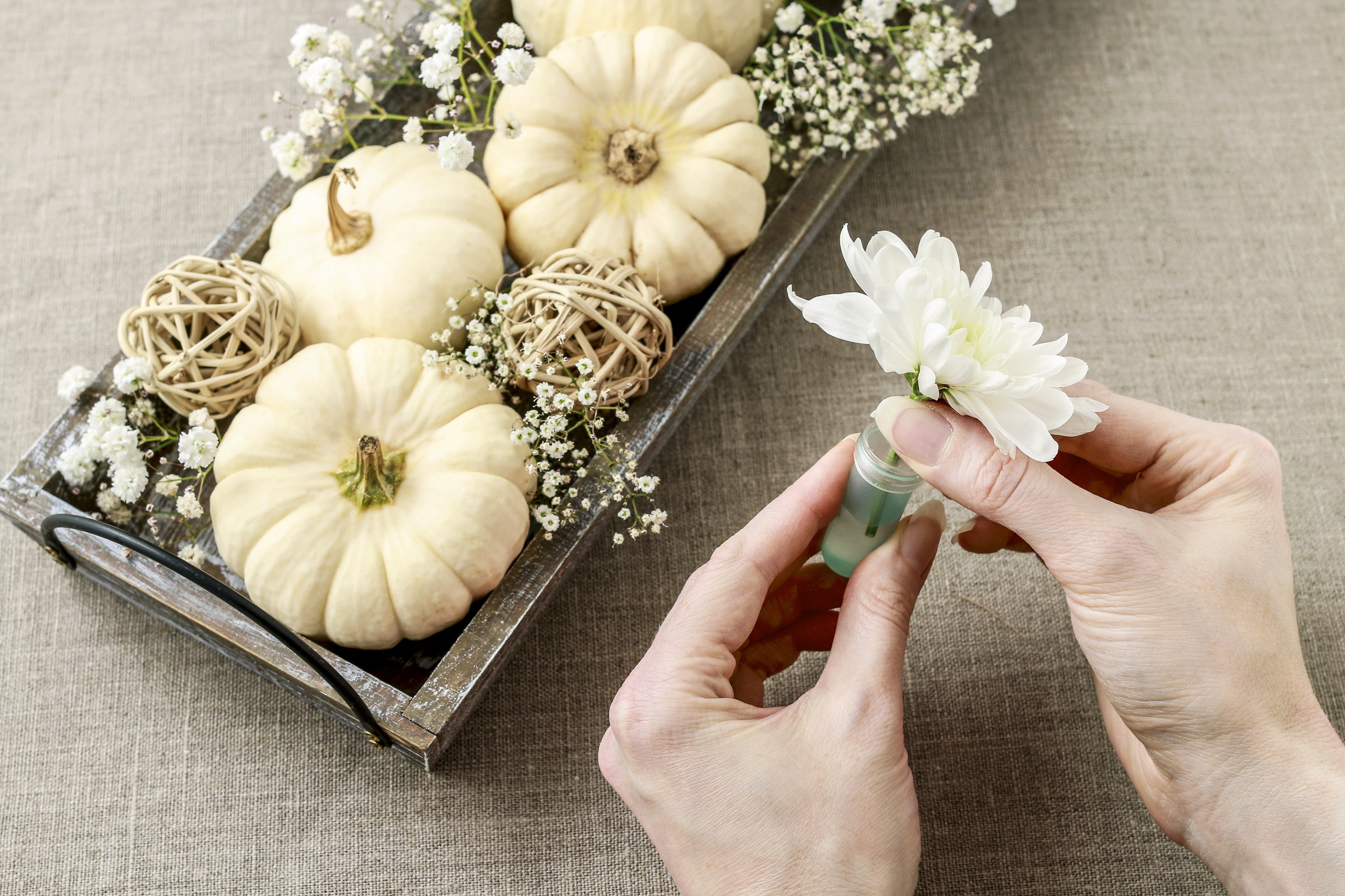 • dekoracja z białej dyni DIY