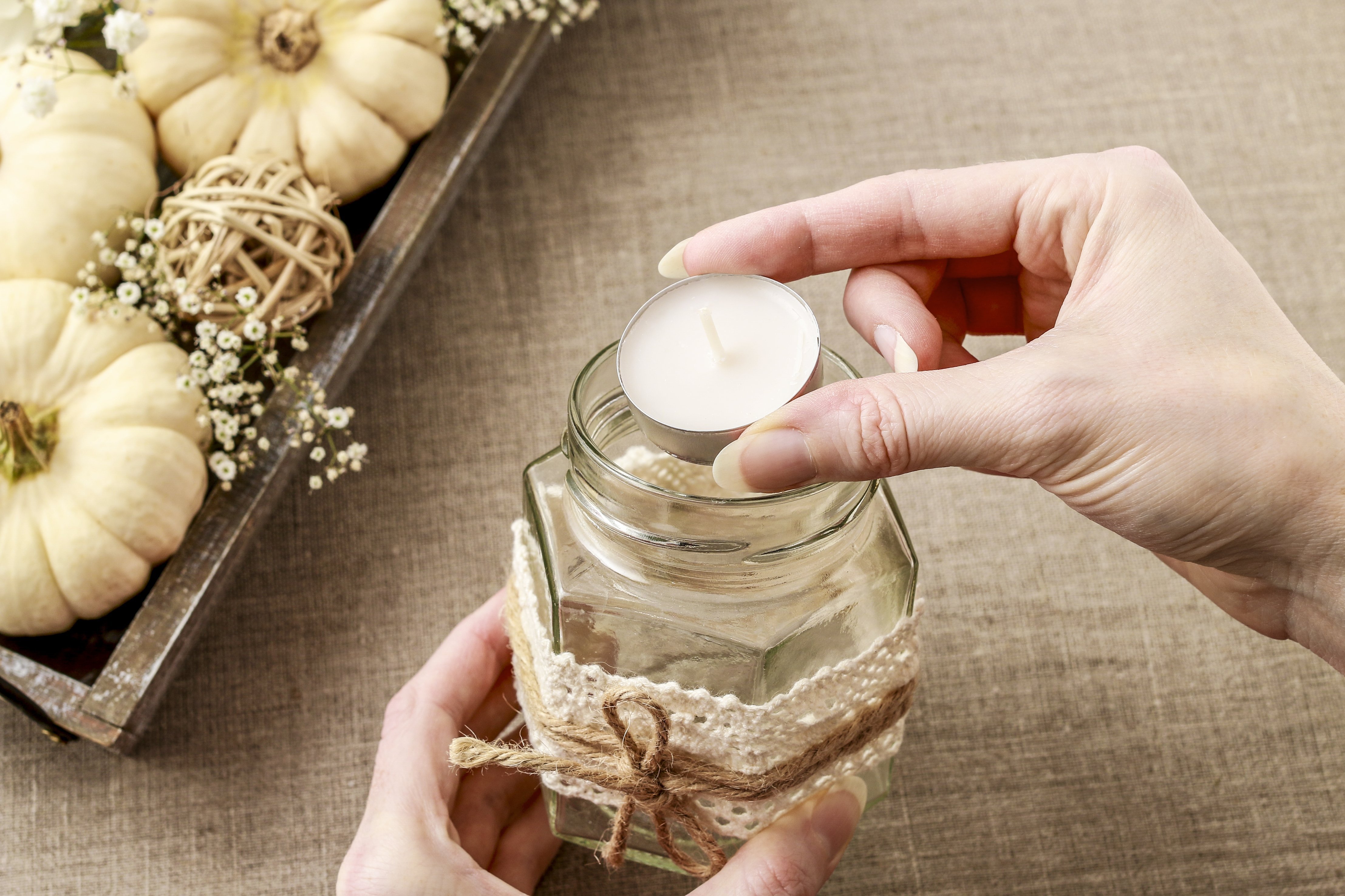 Dekoracja świetnie będzie się prezentować na stole ze świeczką.
