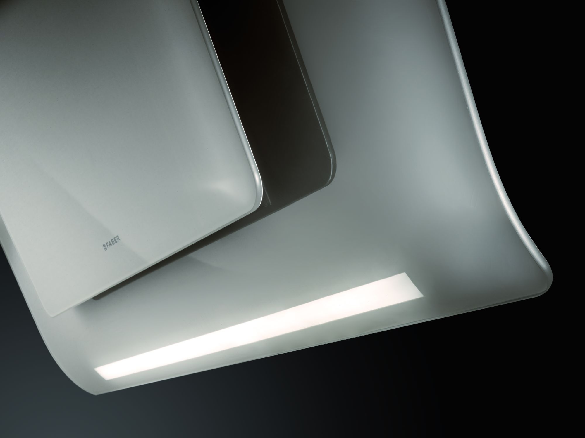 • VEIL WH 90. Okap przyścienny w kształcie welonu, szer. 90 cm. Faber i Politechnika Mdiolańska tworzą nowe kanony dizajnu.