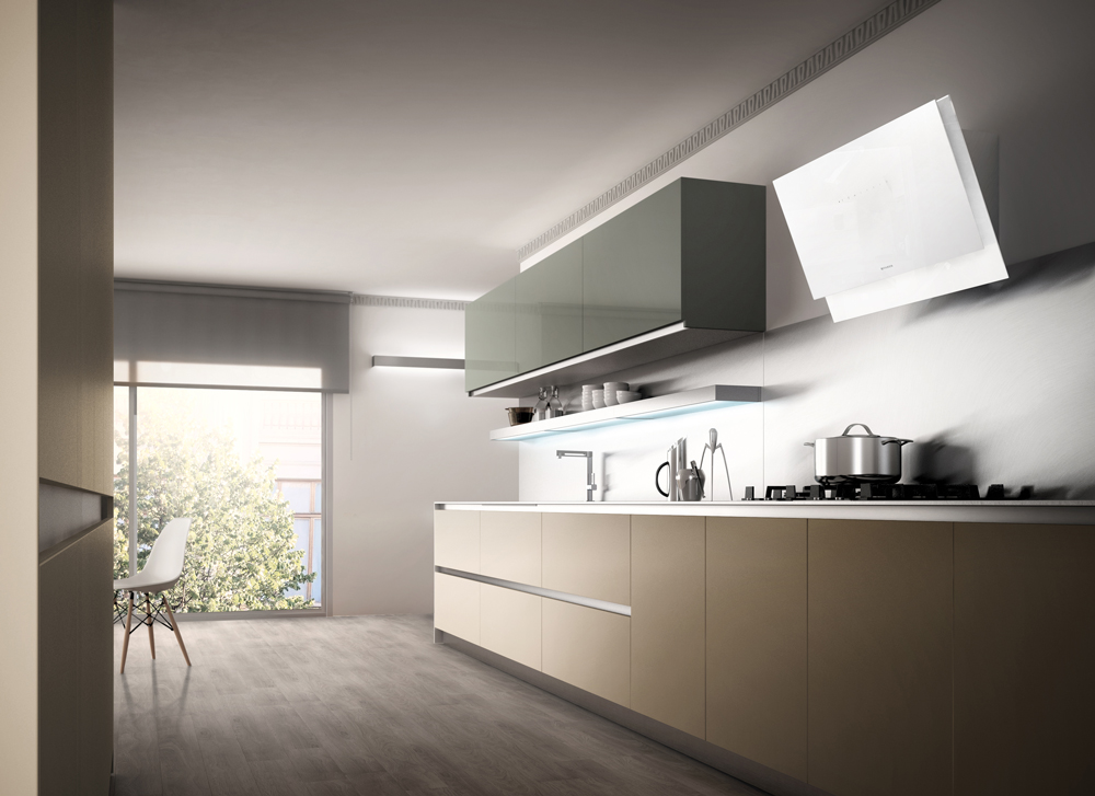 • Skylift. Niepowtarzalny okap podsufitowy, który obniża się nad płytę.