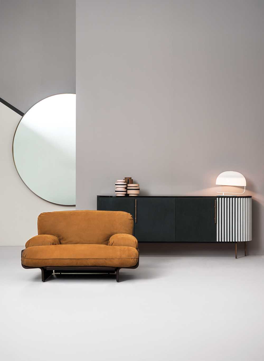 • Fotel Geo na cienkich złotych nóżkach pasuje do sofy z tej samej kolekcji, SABA ITALIA