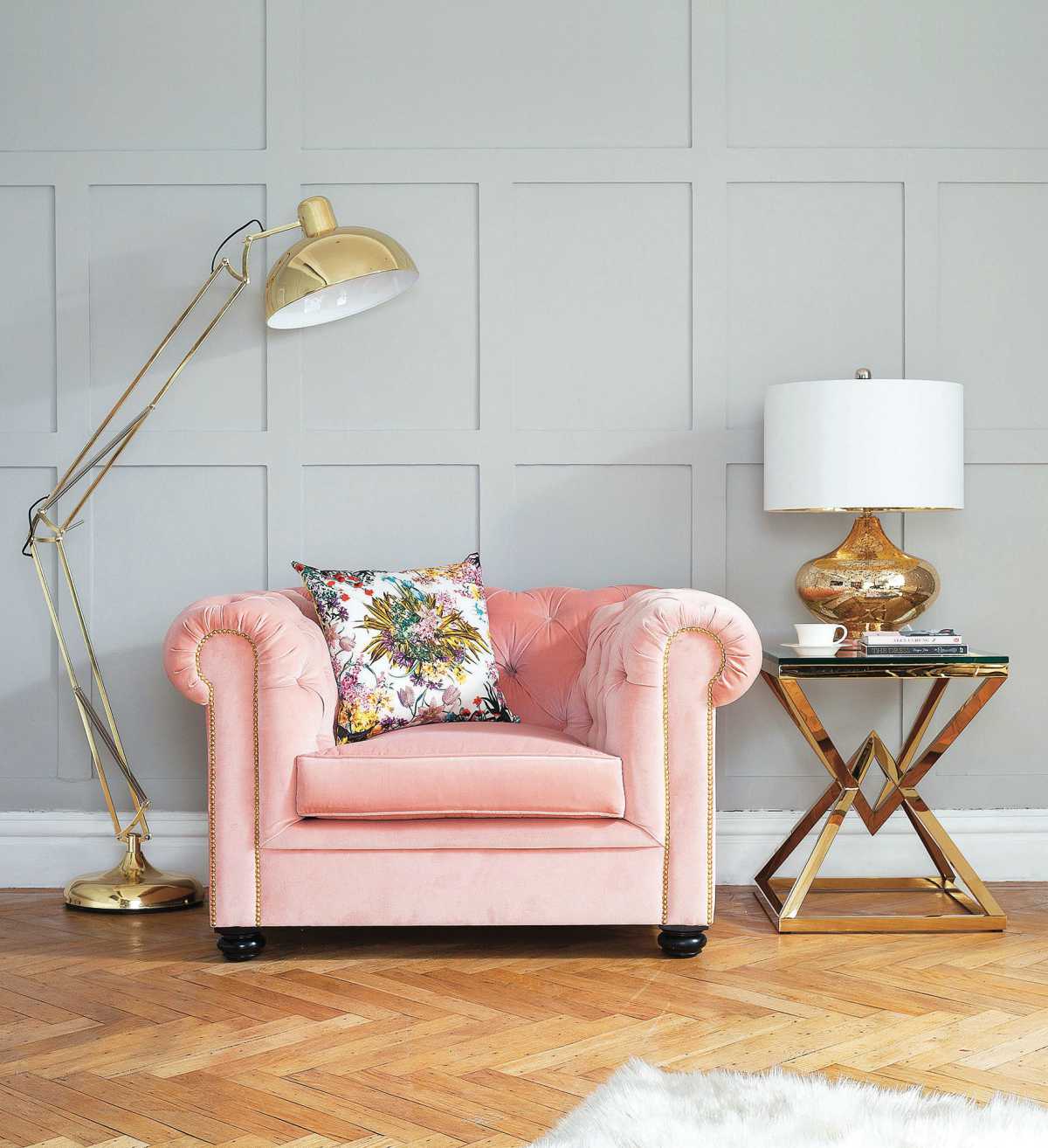 • różowy fotel do salonu