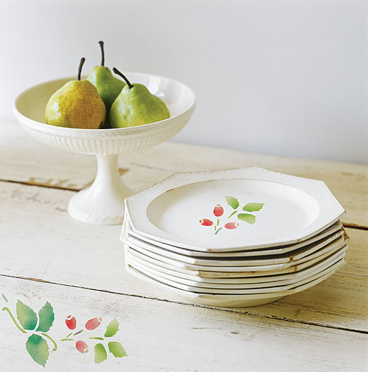 • Wzór z gałązkami głogu na talerzach. Gałązka głogu - szablon do malowania