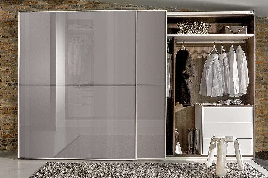 • Przesuwne fronty szafy Pax są zrobione ze szkła hartowanego w aluminiowych ramach, 2185 zł, IKEA