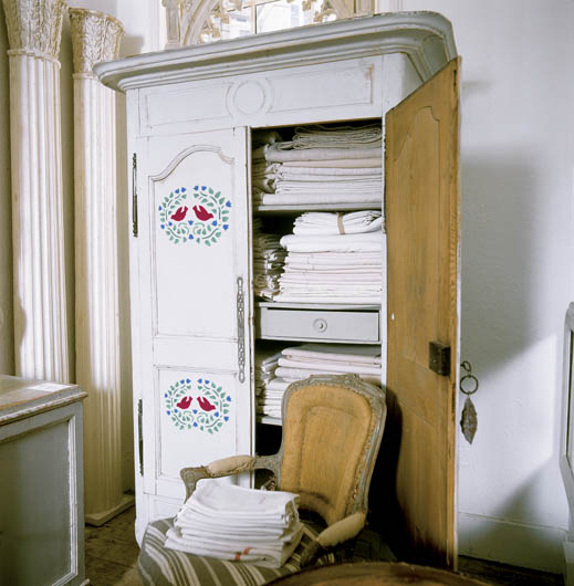 • Przecierane meble nabiorą wyrazu, kiedy ozdobimy je malowidłem od szablonu.