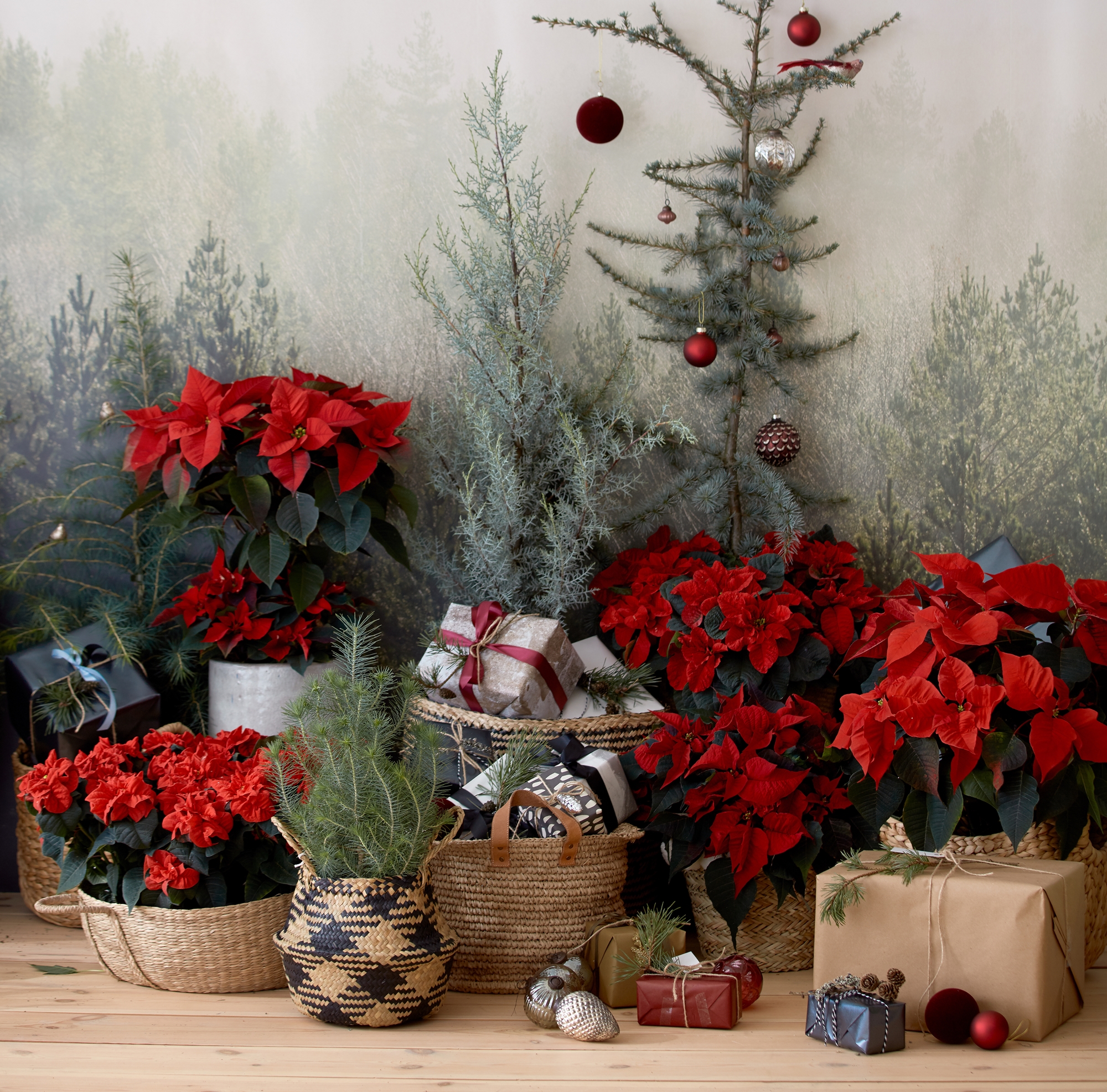 • dekoracje bożonarodzeniowe z gwiazdami betlejemskimi
