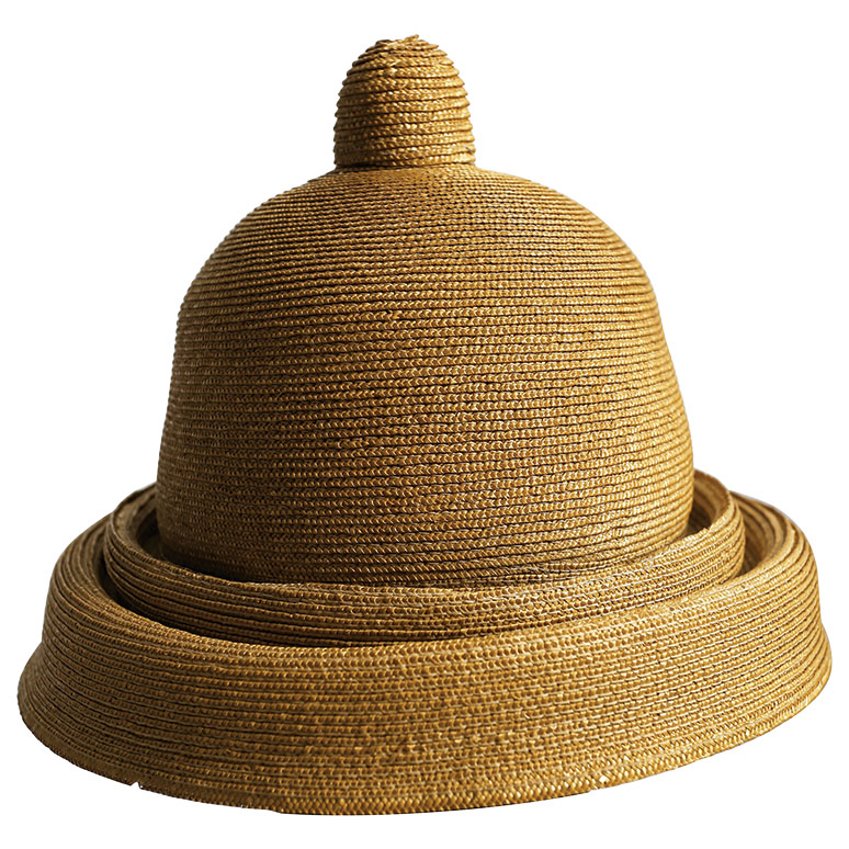 • Bogato zdobiony kapelusz w kształcie hełmu wykonany ze słomy, metalu i jedwabiu dla wysoko postawionych urzędników, XVI w.