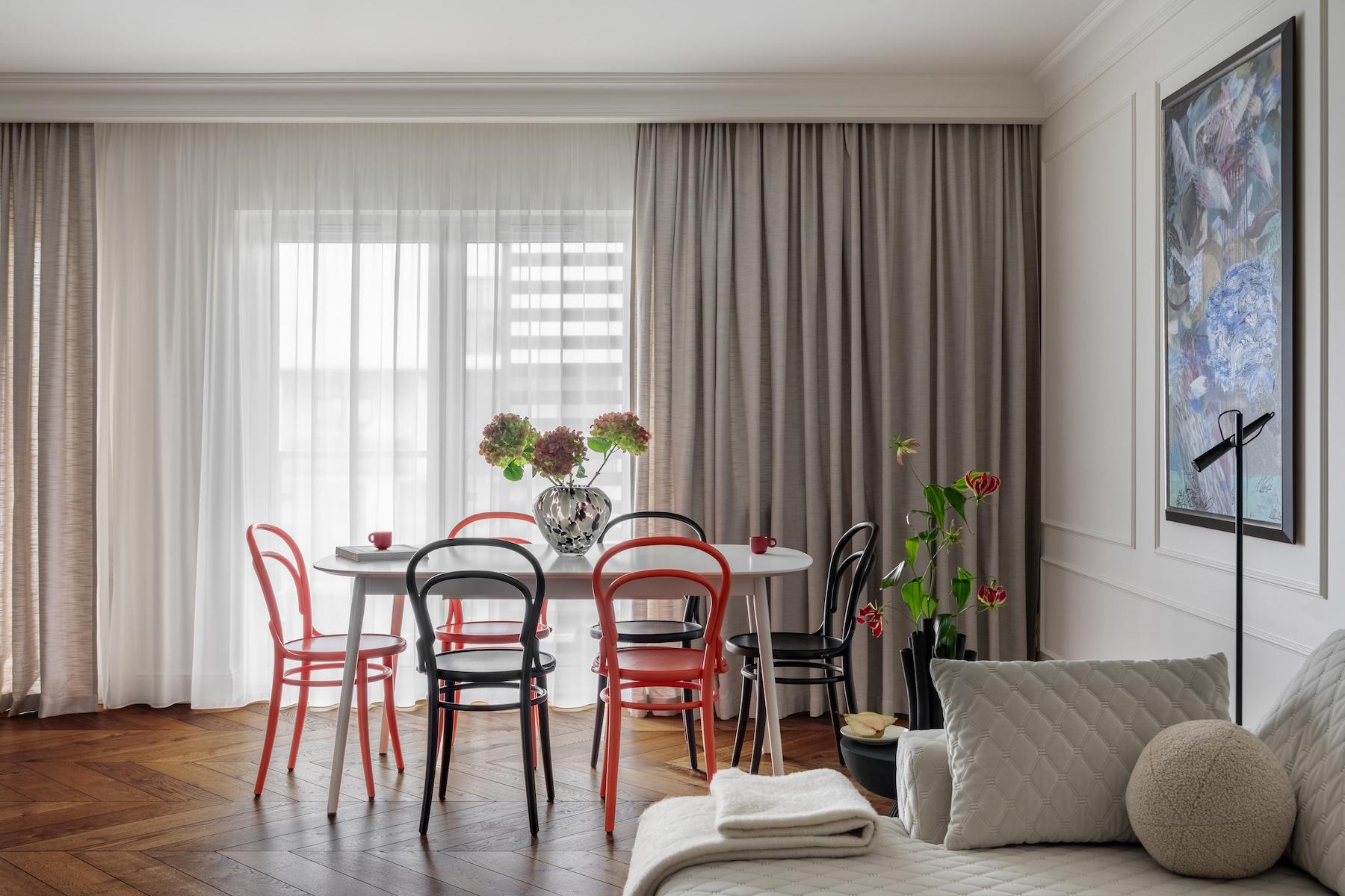 Francuska elegancja z nutą nowoczesności. Tak urządzono 130-metrowe mieszkanie pasjonatki kwiatów, sztuki i designu