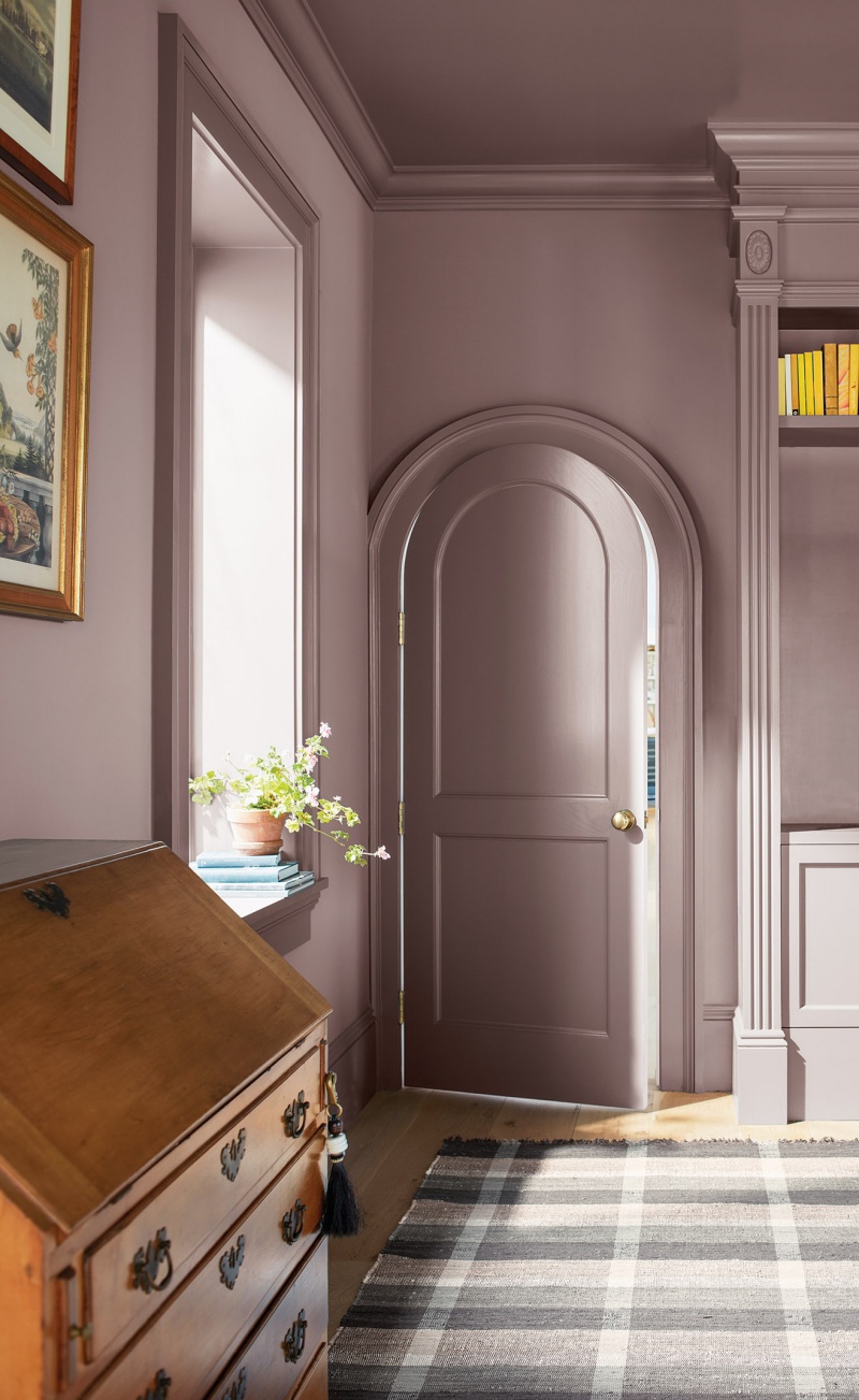 Kolor do pokoju od zachodu i południa: Cinnamon Slate, Kolor Roku Benjamin Moore 2025, miks wrzosowej śliwki i aksamitnego brązu, benjaminmoore.pl