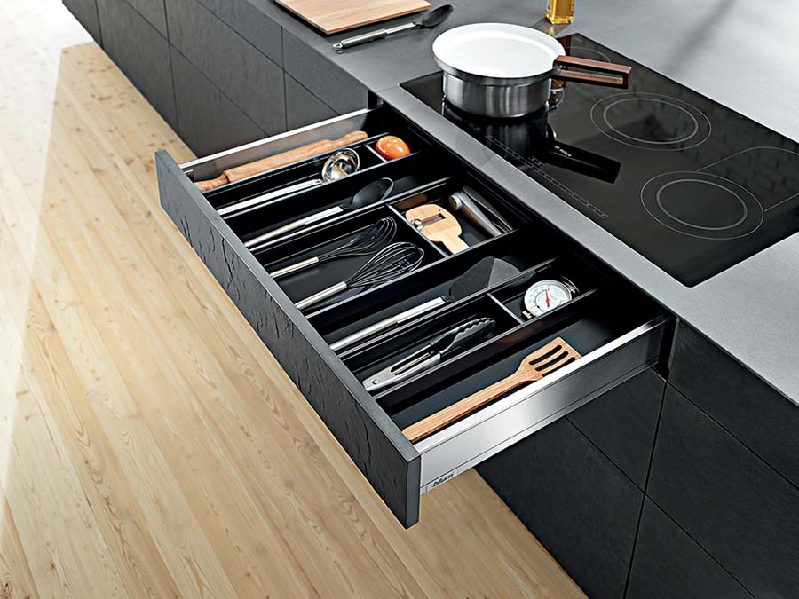 Pod płytą grzewczą musi być szuflada, tutaj Legrabox firmy Blum