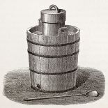 • Rycina przedstawiająca starą maszynkę do lodów, Francja, 1873 r.