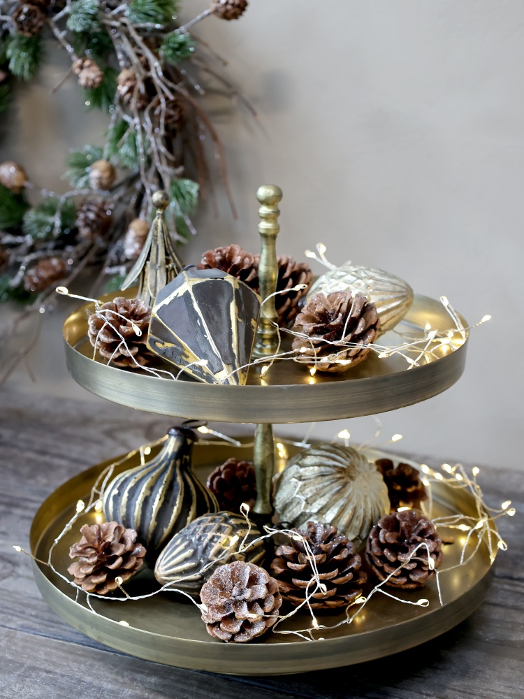 Ozdoby świąteczne w kolorze starego złota, aranżacja marki Chic Antique, chicantique.dk