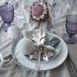• Biel i fiolet – dekoracja stołu na święta, aranżacja