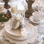• Dekoracja stołu na boże narodzenie: srebrno-białe bombki i zdobione talerze, Belle maison
