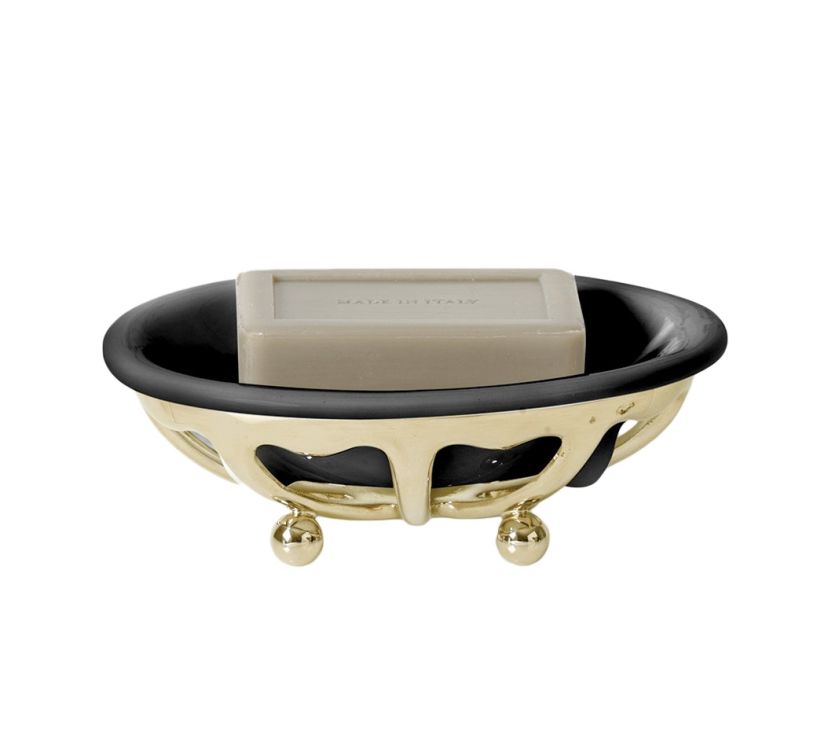 Ręcznie robiona mydelniczka z metalu z ceramiczną podstawką, balineum.co.uk