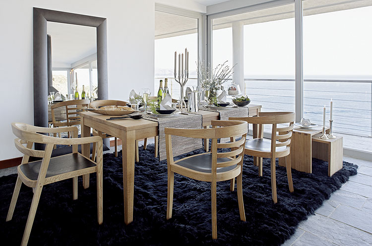 Stół z olejowanego dębu Tavola Nuova – 1329 euro netto, krzesło Julius – 444 euro netto, komplet stolików Como – 575 euro netto. CASA MIA
