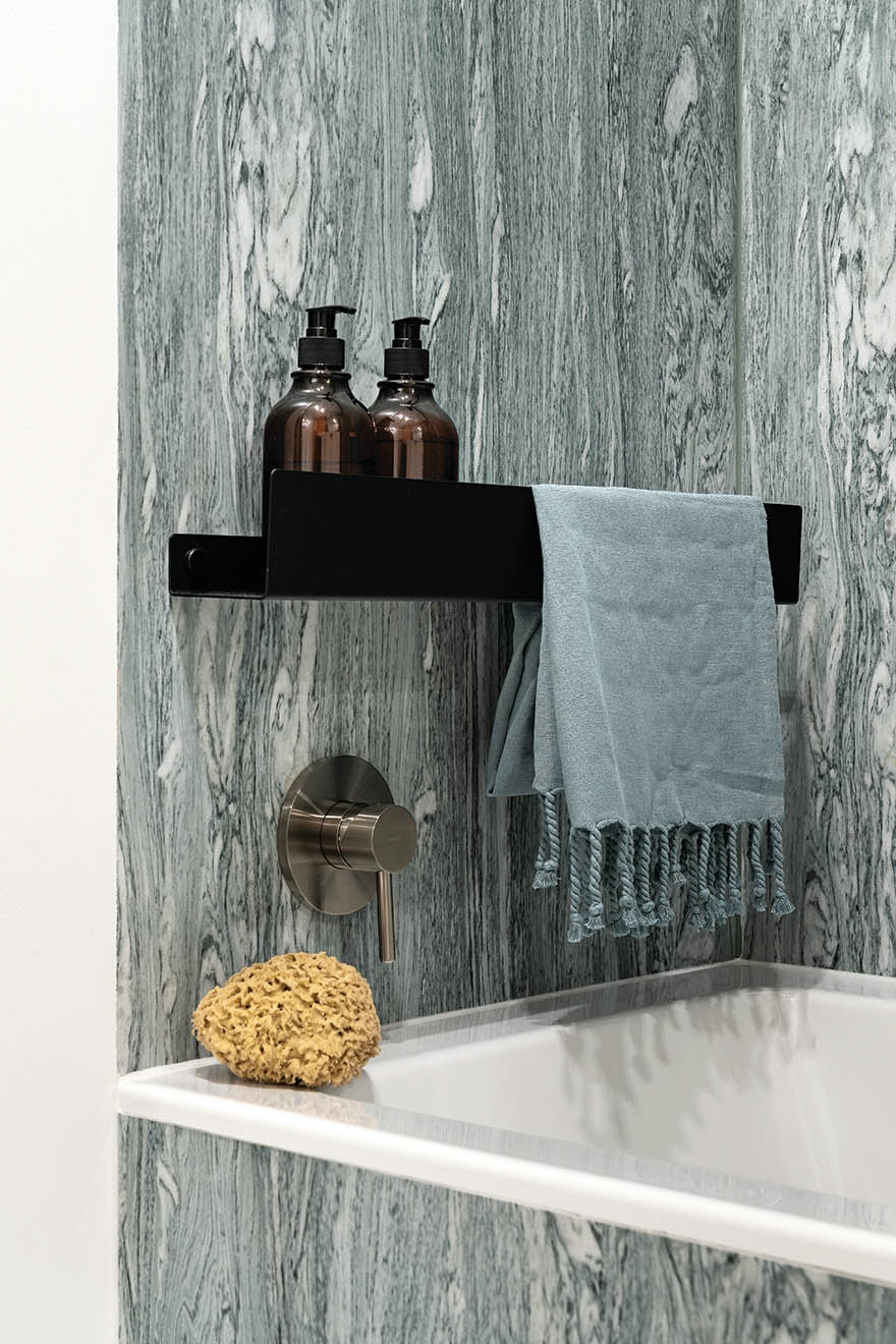 • zielona łazienka w małym mieszkaniu 38 m2
