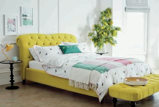 • żółte łóżko do sypialni