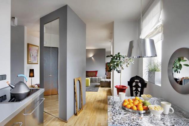 Ścianka-kubik, która dzieli mieszkanie na kilka stref, a jednocześnie ich nie ogranicza. Zdjęcie: Radosław Wojnar