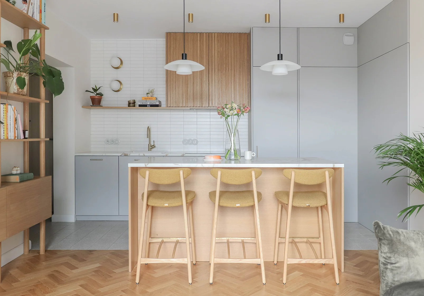 Wyspa a wysokimi krzesłami może pełnić rolę stołu jadalnianego, proj. Framuga Studio, zdjęcie: Gabriela Bartczak, stylizacja: Marta Sójka