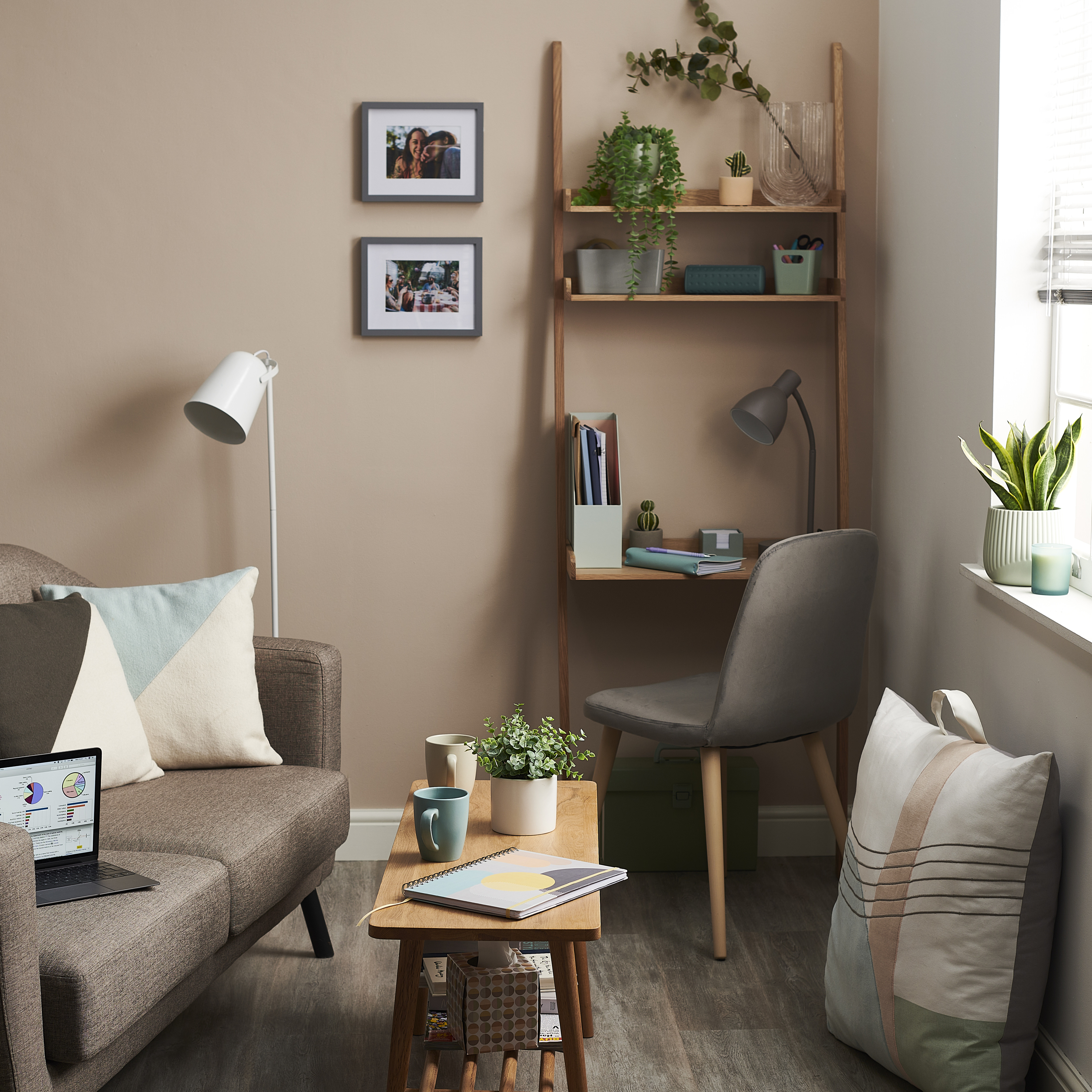 • kącik biurowy w salonie w bloku
