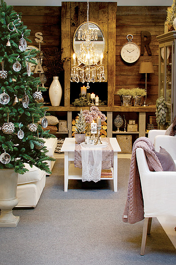 Zegar Clotilde, 639 zł, żyrandol Nostalgia, 3680 zł, świece – od 15 zł, ceramiczny wazon Alma, 259 zł, wazon na choinkę Karol za 959 zł, Lene Bjerre, Wonderhome