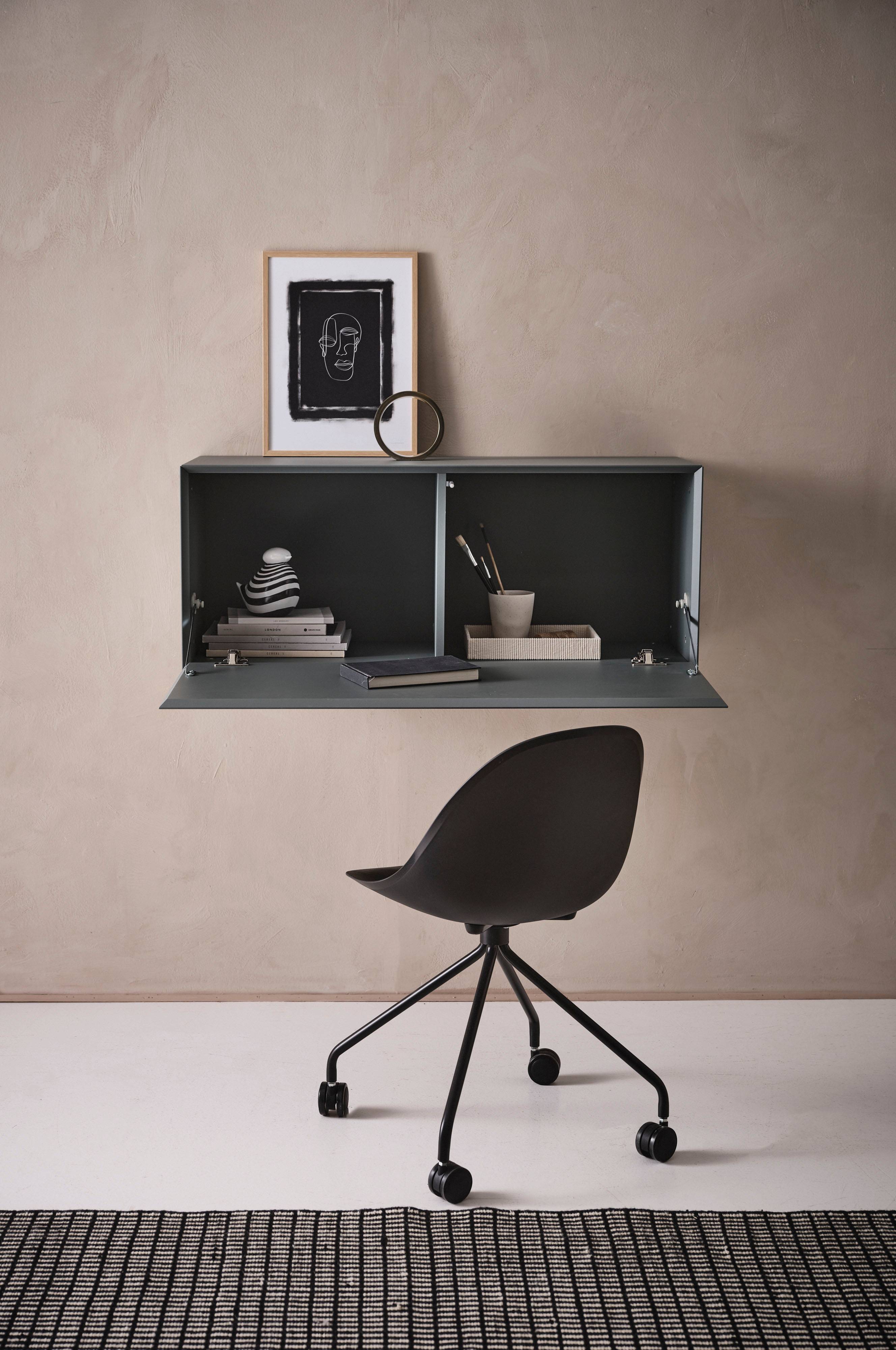 Jeśli pracujesz w domu tylko od czasu do czasu, warto pomyśleć, czy biurka nie zastąpić składanym blatem przymocowanym do ściany. Zdjęcie: jotex.pl
