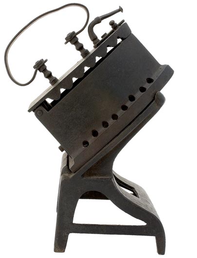 • Żelazko na węgiel, z dmuchawą, która podtrzymywała w środku wysoką temperaturę, fot. Forum