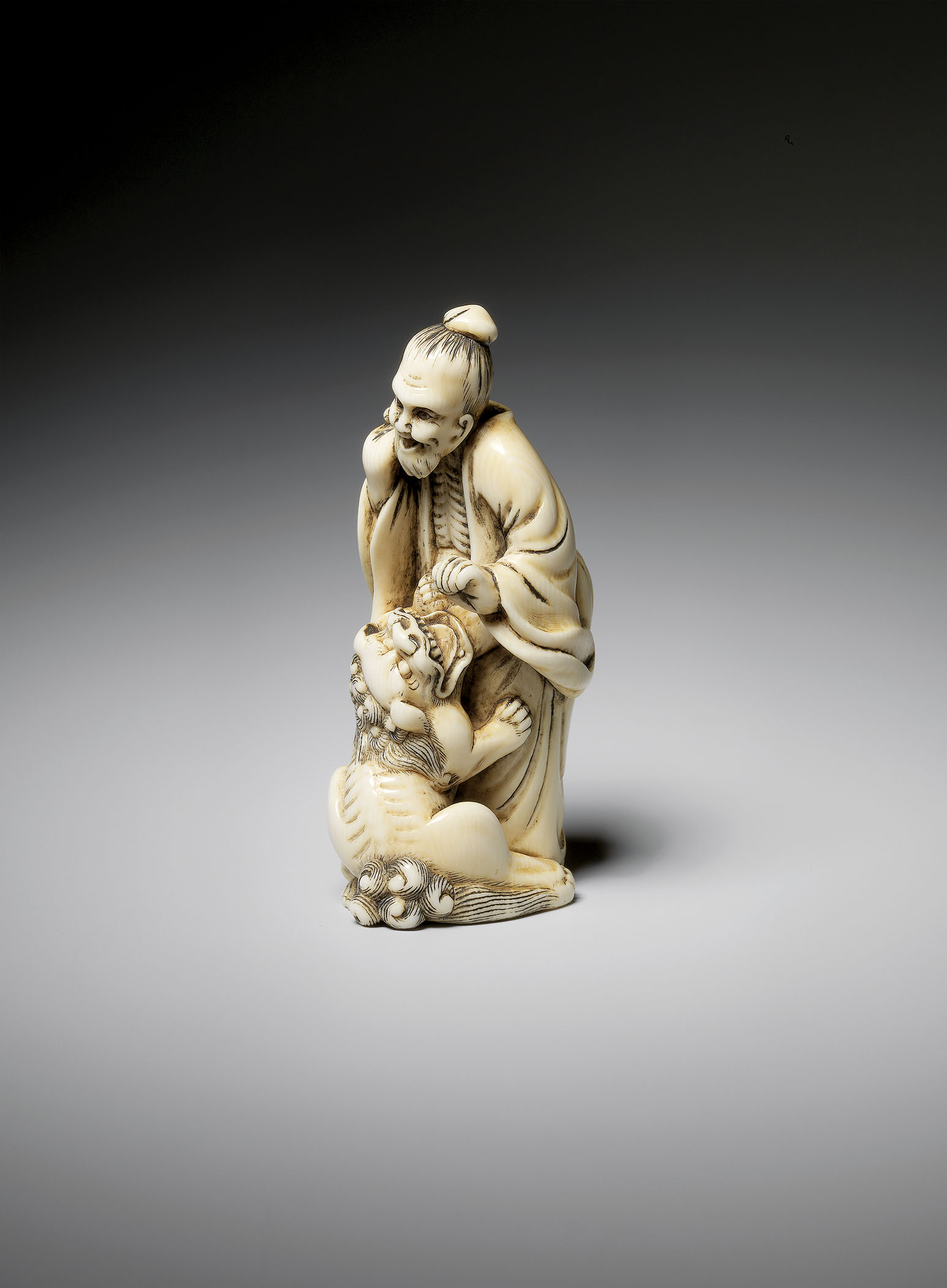 • Mitsuharu Shishi trzymający łapy na piłce , kość słoniowa, ok. 1770 r.
