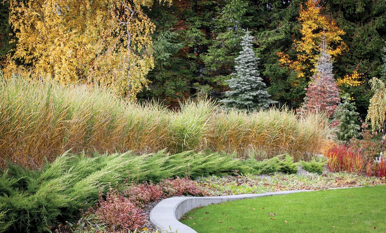 • Wrażenie i dużo szumu robią trawy miskanty, dalej zobaczymy amarantowo przebarwione trzmieliny oskrzydlone w towarzystwie