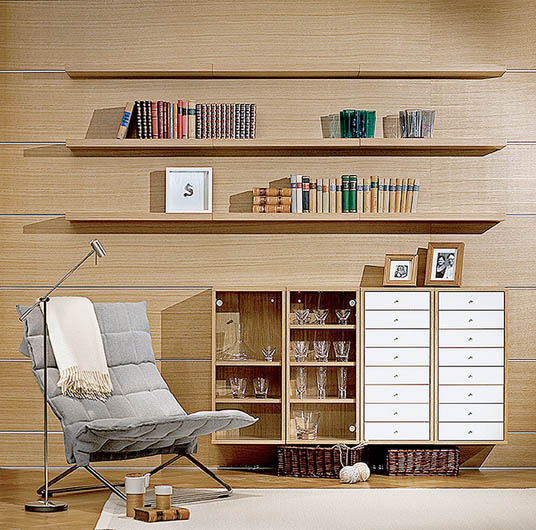 • Idealny kącik do czytania. Zestaw półek i wiszących kubików (w fornirze dębowym) kosztuje ok. 5500 euro. MUUNTO