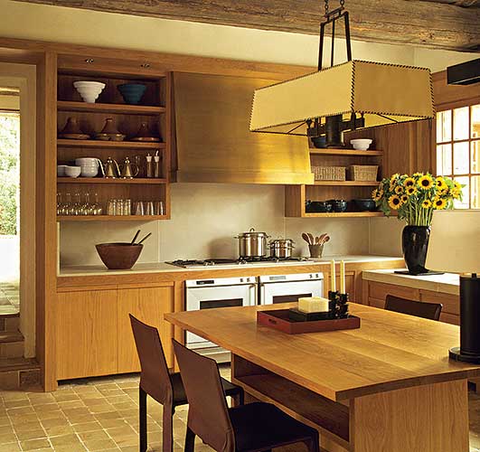 • Jasne drewniane szafki świetnie pasują do kuchni.