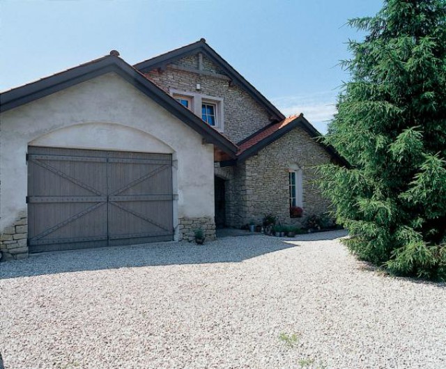 • Wokół domu zostały wysypane drobne kamienie. Świetnie komponują się z elewacją domu.