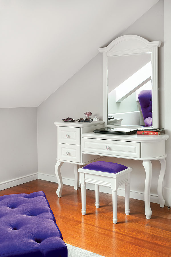 • W sypialni znalazło sie miejsce na codzienne rytuały kosmetyczne gospodyni.