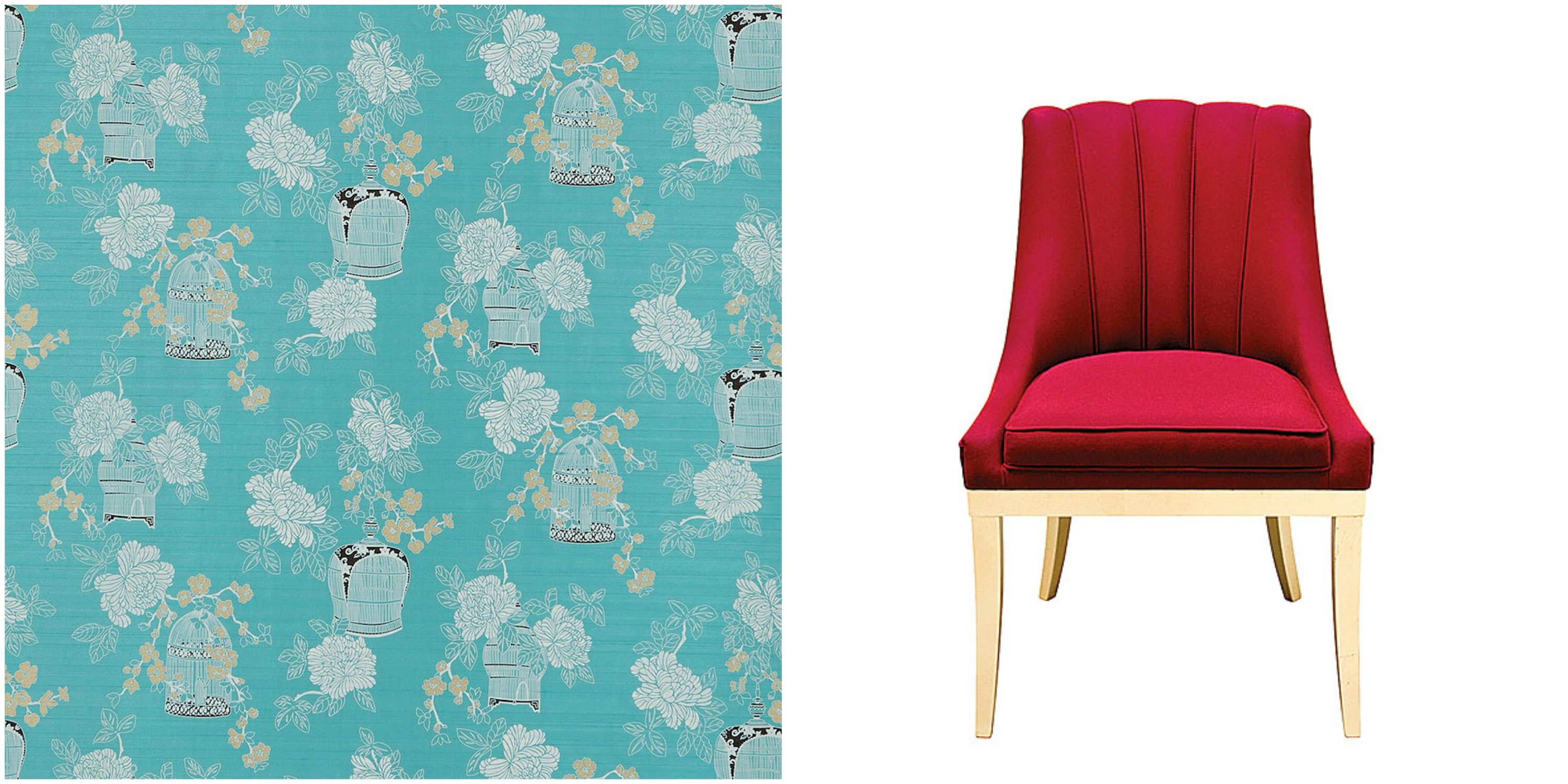 (z lewej) Tkanina Akemi, Harlequin, 340 zł/m; impresje.pl (z prawej) Krzesło tapicerowane Kayapo, brabbu.com