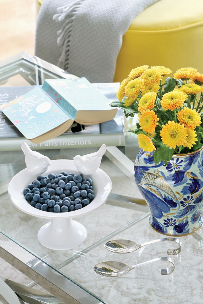 Klasyka z kolorem – klasyczne wnętrza z niebieskimi i żółtymi dodatkami