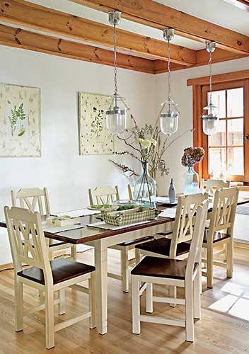 • Wejście do domu tonie w kwiatach. W gościnne progi zapraszają sękate kolumny, obrazki, nawet malowane konewki.