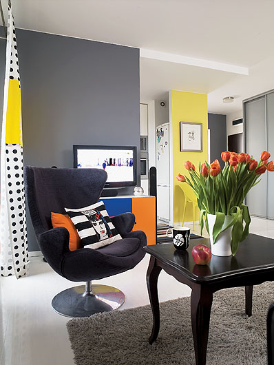 • Kolor na tle białych ścian. Kolorowe mieszkanie