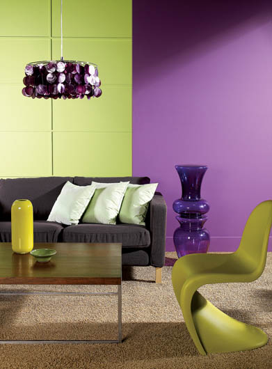• Ten pokój pomalowano Batystowym Fioletem i Limonkową Taftą. Akrylit W Fashion Collection. Cena - 54 zł/2,5 l. DEKORAL