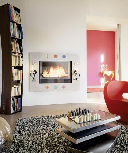 • Kominek bez komina? Tak, firma Arkiane wpadła na pomysł odprowadzania spalin dołem - cztery rury schowane są w podłodze.