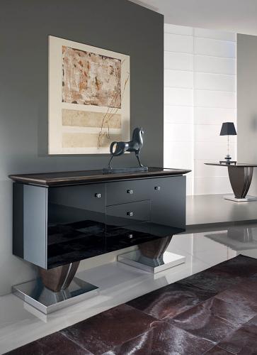 • Smania słynie z luksusowych mebli na wysoki połysk. W komodzie Blackstone połączono drewno z chromem. SMANIA