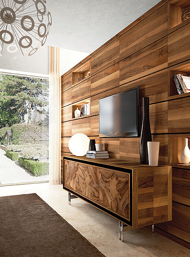 • Nowość z targów w Mediolanie. Efektowne drzwiczki zrobiono z czeczotki. Do kompletu można zamówić ścianę. ORIGINE ITALIA