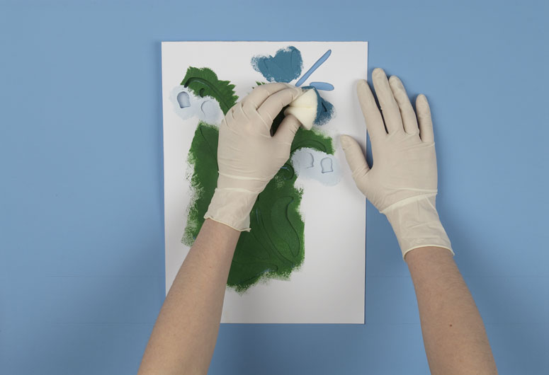 • Drobne elementy wzoru malujemy stemplem z gąbki.