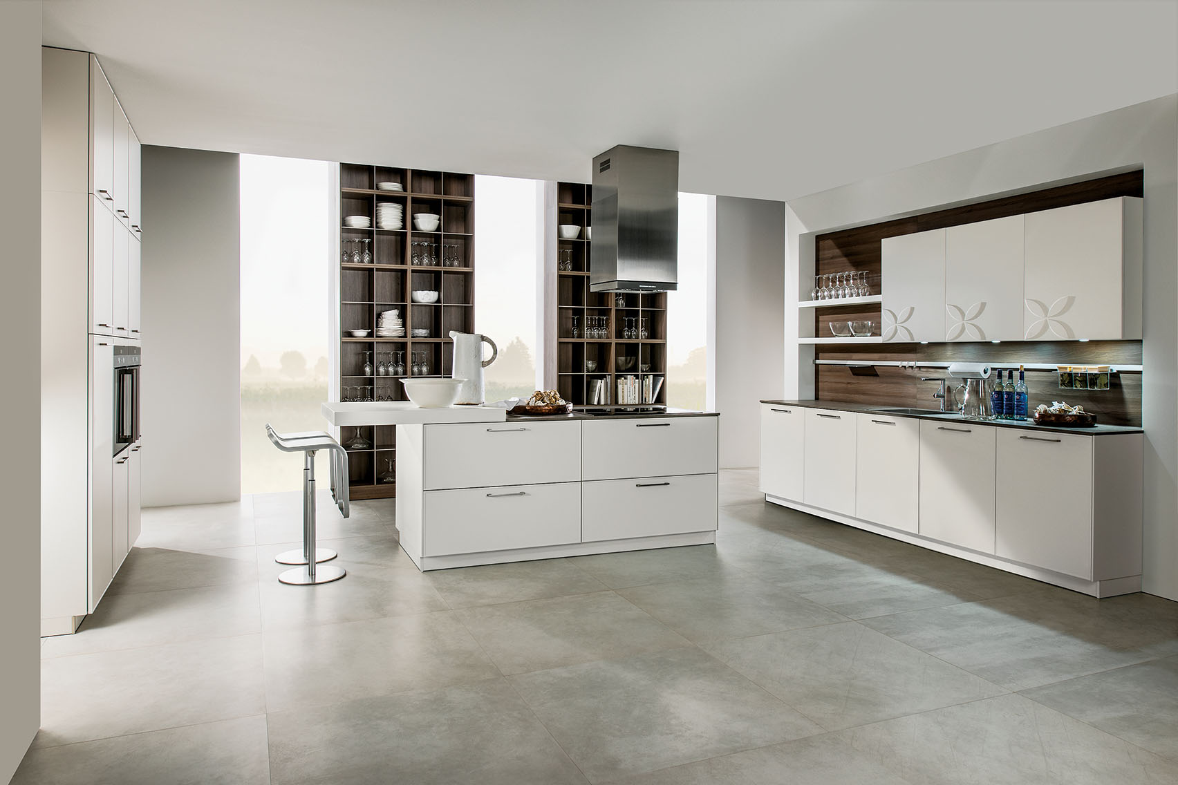 Możesz wybrać piekarnik kompaktowy z mikrofalówką i szufladą do podgrzewania, stalowy zlewozmywak z baterią, płytę indukcyjną, która rozpozna wielkość garnka. I koniecznie sterowany dotykowo okap, jednocześnie... lampa. Kolor? Stalowy z dodatkiem czarne