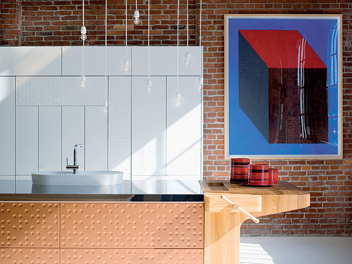 • Nowoczesna kuchnia z asymetrycznymi szafkami, Mesa. Schiffini